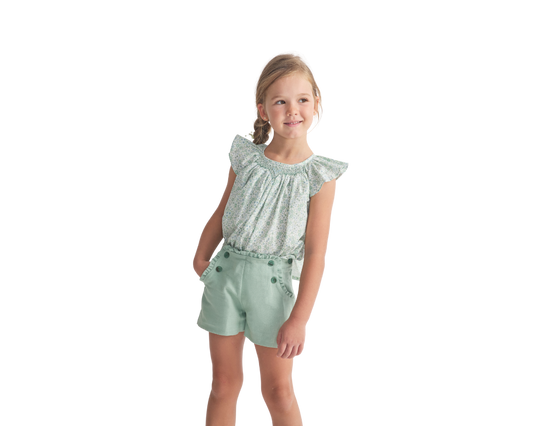 Adorable outfit. Beautiful shade of blue and sweet floral print.