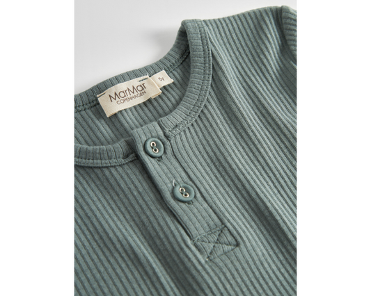 Long Sleeve Ribbed Henley Set - Dusty Green