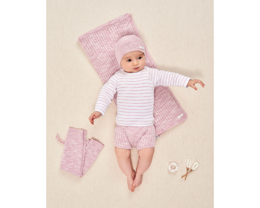Short Sleeve Henley Rib Shorts Set - Lilac Mist
