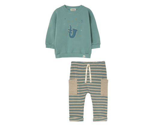 Soft Stripes Cargo Sweater Set - Artic Blue