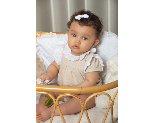 Ecru Polo Long Sleeve and Melange Blue Woven Pants