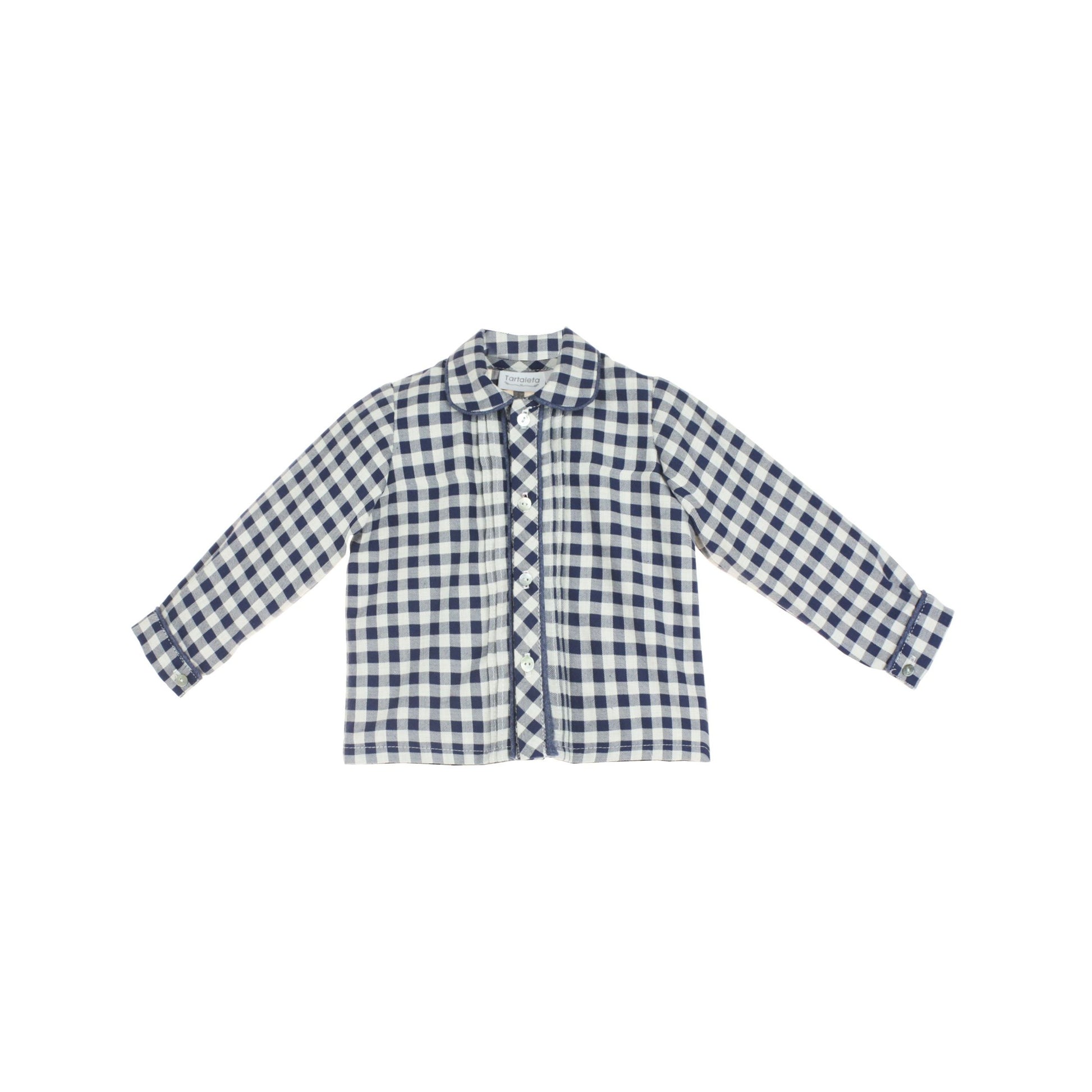 Classic style meets everyday comfort in this adorable two-piece set. The navy and white gingham button-up top features a timeless design with a peter pan collar and contrast check trim down the front. Paired with soft chambray shorts accented with matching gingham pocket flaps, this outfit is perfect for both playtime and special outings.