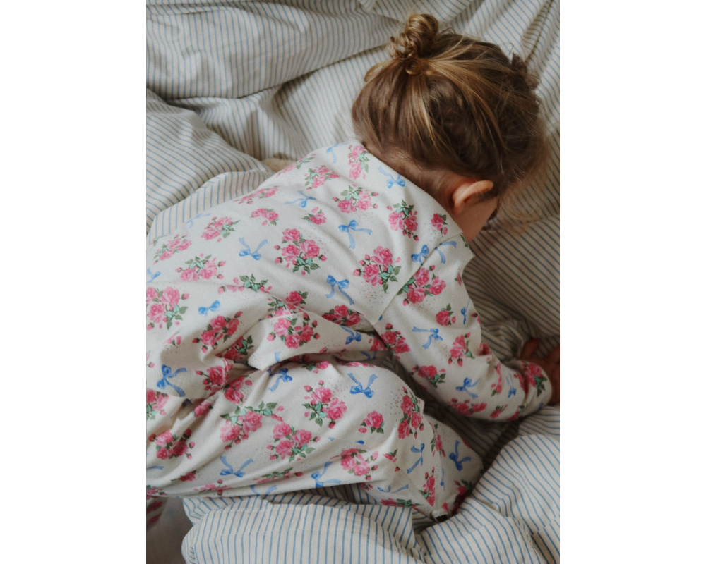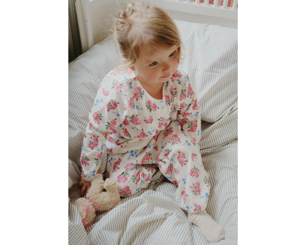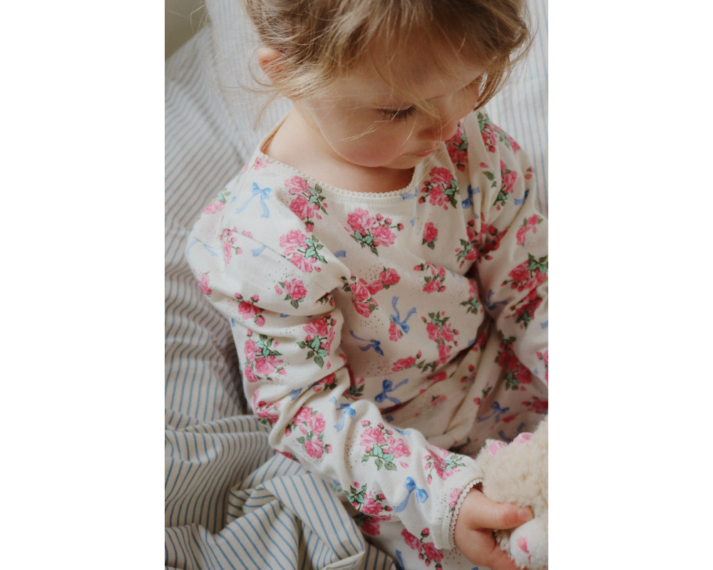 This soft two-piece set features a long-sleeved tee and pants with a comfy elastic waist. Made of 100% organic cotton Please note: Smaller sizes, from 3-18 months, the tee features press buttons on the left shoulder for easy dressing. Sizes 2 years and up feature a regular round neck with rib detailing. GOTS, Organic, certified by CU1094701