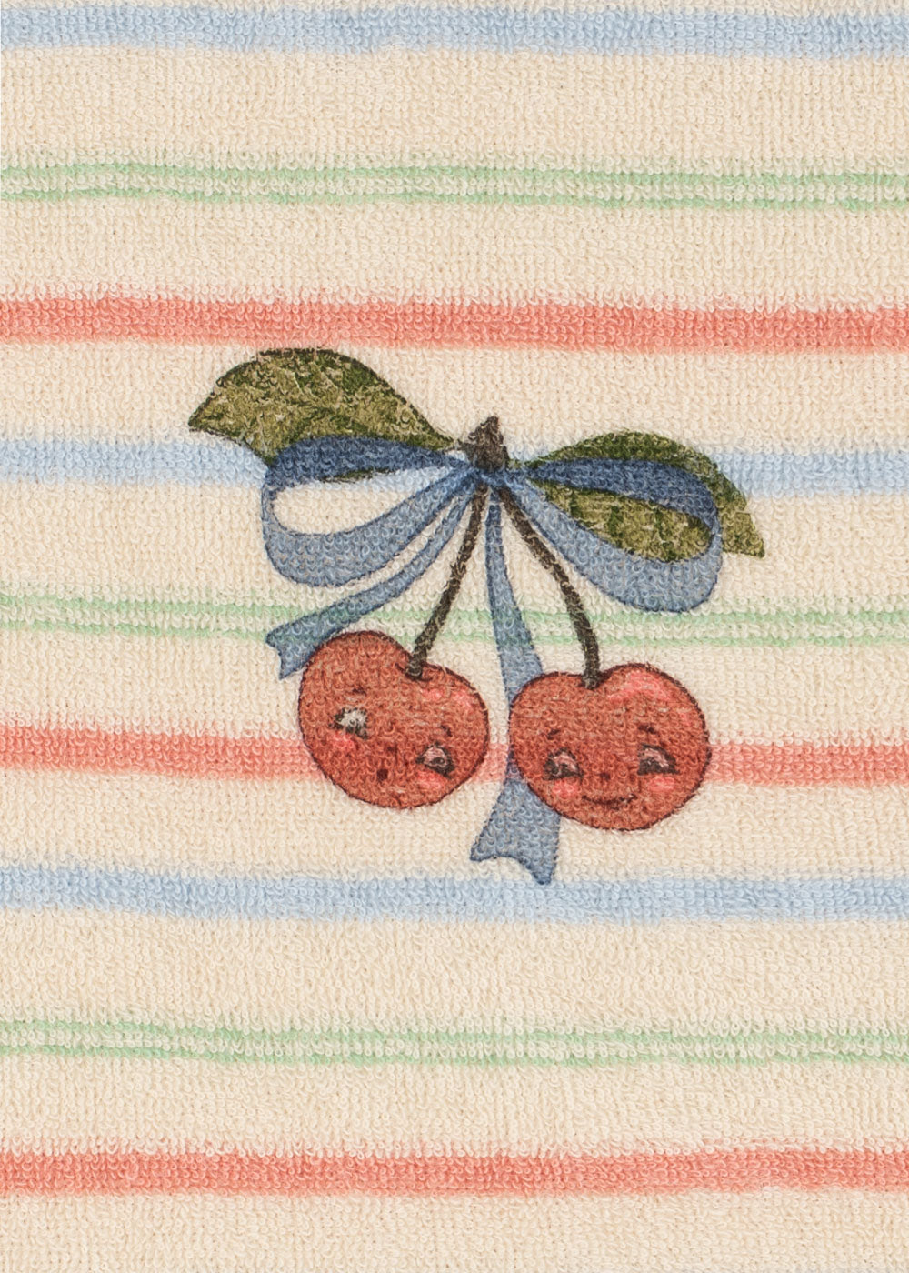 This comfortable two-piece set is made from soft, fluffy organic cotton terry for an easy, everyday feel. The classic sweatshirt features a relaxed fit with dropped shoulders and ribbed hems, while the matching shorts are designed in a classic fit with an elastic waistband, flexible drawstring, and subtle side slits for added comfort and movement. Finished with blue red and green stripes and a cherry on the chest, this set blends style and softness effortlessly. GOTS, made with 80% organic materials, certified by CU 1094701.
