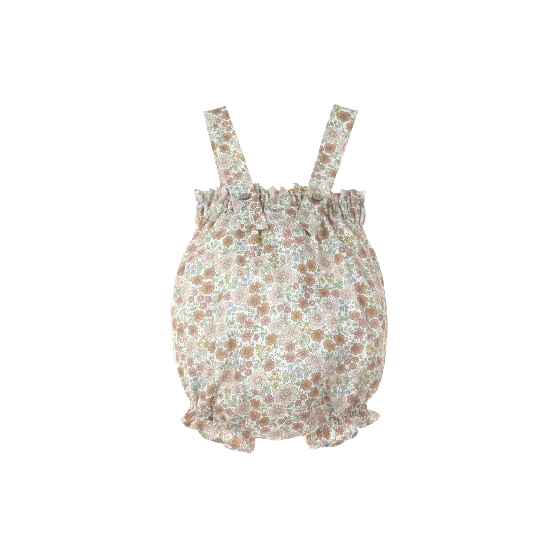 Sweet, soft, and irresistibly charming — this floral bubble romper is made for little moments that matter. Crafted from lightweight cotton in a vintage-inspired floral print, it features delicate ruffle details at the straps and leg openings for a timeless, feminine touch.