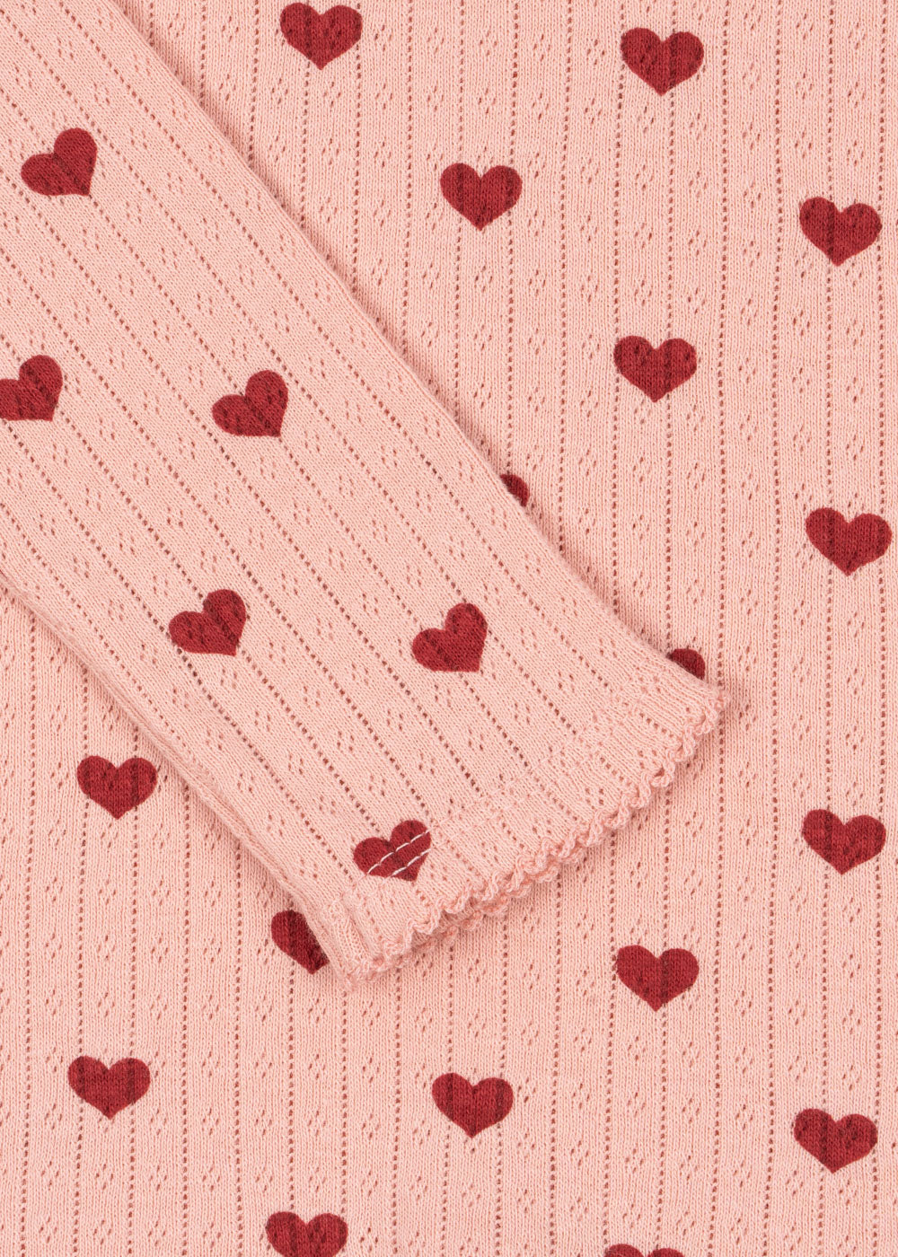 The Minnie Pointelle Set is a beautiful, comfortable long sleeve and legging set for your little ones. Created with comfort and looks in mind, the blouse feature an elegant pointelle design with little hearts printed throughout and a small ribbon bow on the neckline. The set is perfect for everyday wear, school, the park, casual outings, or just days spent at home. Your little girls will look elegant, comfortable and put together.